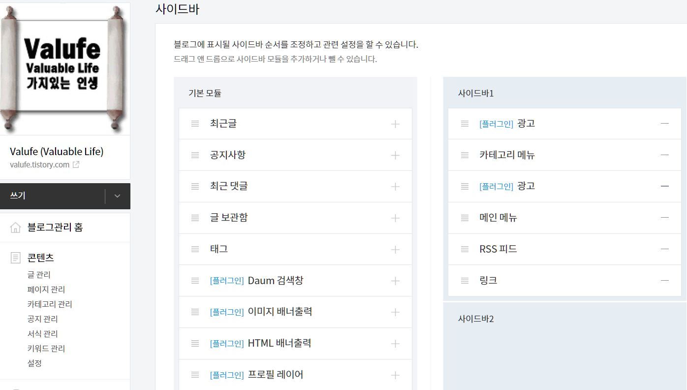 내가 사용중인, 티스토리 Portfolio 스킨의 사이드바 내용 저장