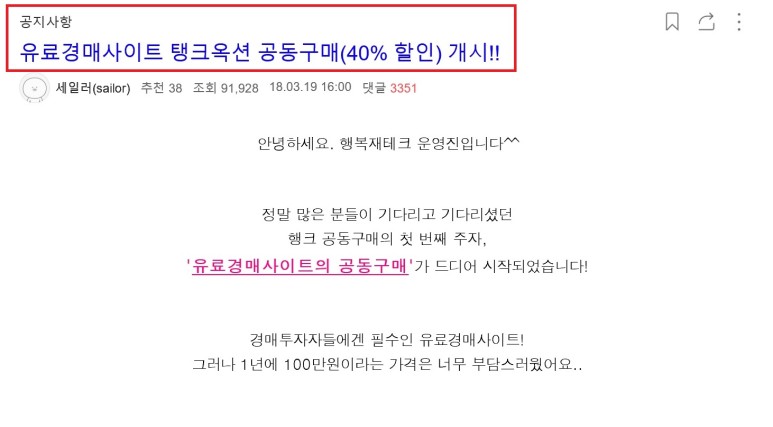 저는 '가격'때문에 탱크옥션으로 결정했습니다.