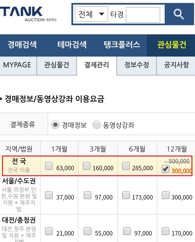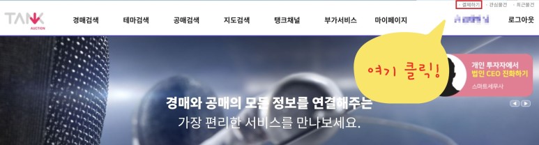 5. (신청 다음 날) 탱크옥션 로그인 후, 우측 상단 '결제하기' 클릭