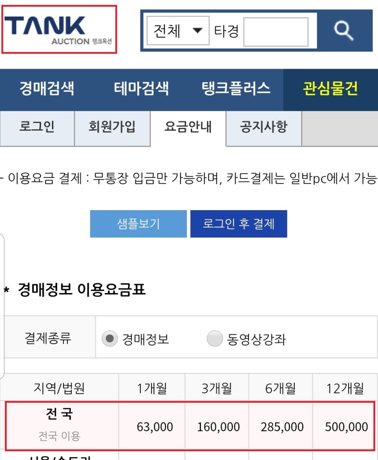 2. 탱크옥션은 행복재테크 카페 회원에게 40%할인을 제공하고 있고, 카페에서도 탱크옥션이나 타 사이트나 별 차이가 없다고 하는데... 강사님들이 실제사례 및 물건검색을 하면서 보여주시는 경우에 이용하는 사이트는 탱크옥션이 아닌 것 같았다.